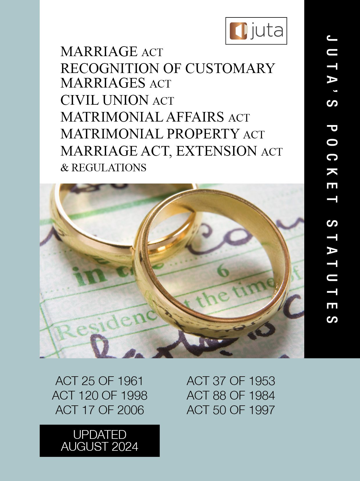 - Recognition of Customary Marriages Act 120 of 1998: Notice of extension of period for registration of customary marriages in terms of s. 4 (3) (a) and (b) from 1 September 2024 to 31 August 2026 published (GNs 5483-4 in GG 51462 of 29 October 2024) (pp 3 & 4)